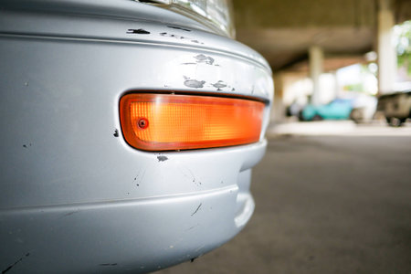 Car rear light with bumper scrash and broken by accident on road,Car insurance concept