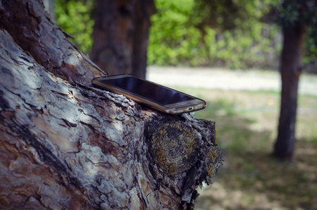A closeup shot of a phone on the tree in the pa