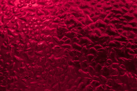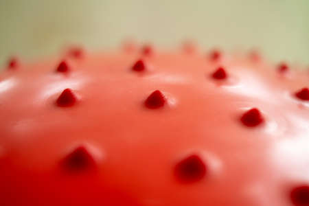 Red gymnastic ball with bumps. Abstract close-up background.