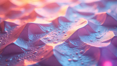Abstract waves with water droplets illuminated with vibrant colors