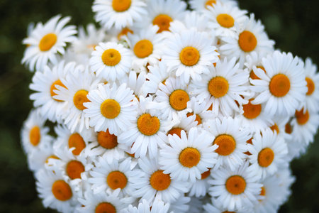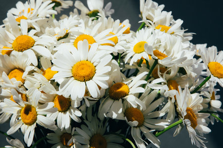 Chamomile for tea close-up with copy space. A bouquet of summer daisies for medical purposes, for health.