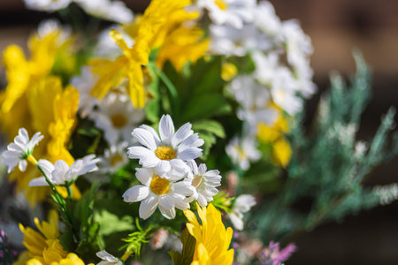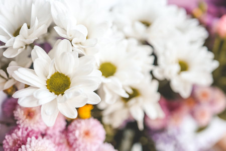 Bouquet chrysanthemum flowers close up as a beautiful autumn background. Fall theme concept backdrop. Selective focus