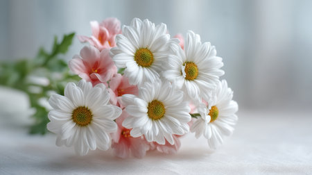 Close-up of white daisies with yellow centers in soft natural light. Ideal for Instagram visuals and botanical content creation