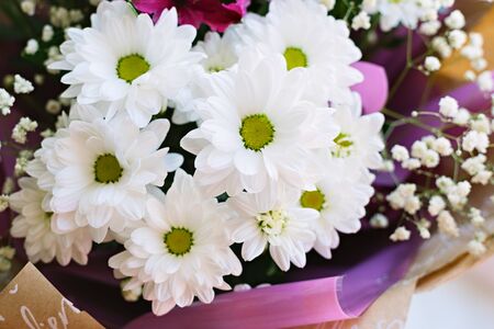 A bouquet of white chrysanthemums. Birthday, mothers day, spring concept