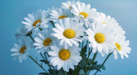 Charming Cluster of Fresh White Daisy Flowers Bathed in Gentle Cool Blue Lighting Artistic Floral Still Life Image