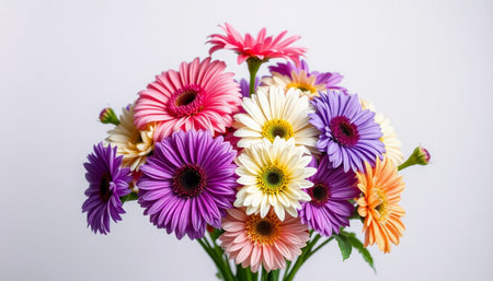 Bunch of Pink tulips white gerbera daisy bouquet of mixed flowers. Fresh spring Summer background