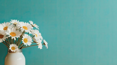 Chamomile large bouquet in a transparent vase closeup with copy space for text. Natural cosmetics on a camomile basis for young and mature skin. Healthy skin concept.