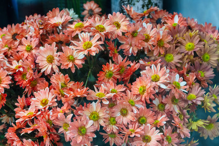 A selective focus closeup of the variety of Chrysanthemum flowers in the flower shop