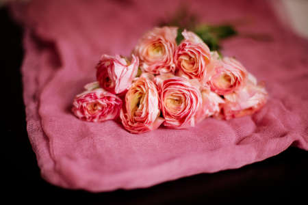 Bouquet of the Flower of Ranculus (pion rose) pink color. Top view.