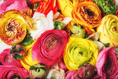 Colorful ranunculus in a bouquet. Persian buttercups bouquet of spring flowers.