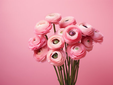 Beautiful pink ranunculus flowers bouquet on pink background.