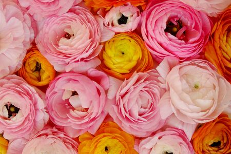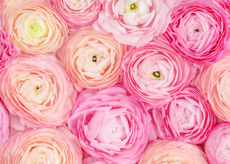 Flowers composition. Floral texture made of ranunculus flowers, flat lay scene