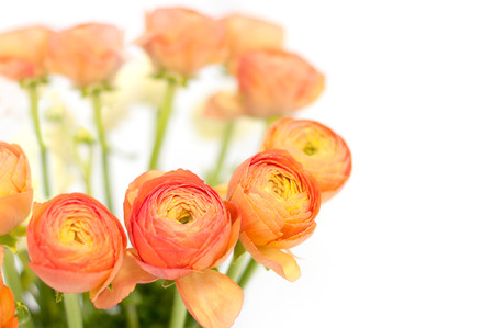Orange Ranunculus Flowers on White Background