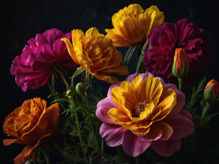 Close up image of colorful bouquet of colorful buttercup flowers