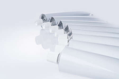 Close up of aluminum tube isolated on white background. Cosmetic or medicine gel.