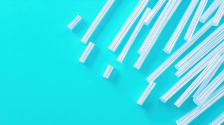 A visually striking image featuring an arrangement of clear plastic straws on a vibrant turquoise background, perfect for minimalist designs and creative projects.