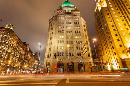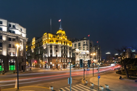 A night view of the colonial embankment skyline in Shanghai China.