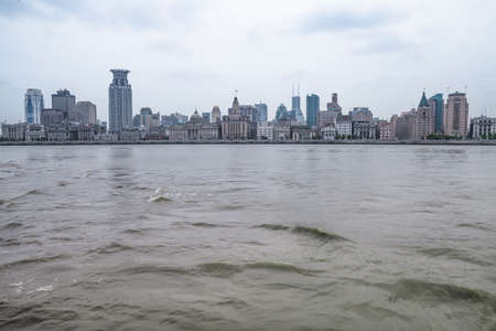 Modern skylines at the bank of Huangpu River, the bund of Shanghai, view from Pudong.
