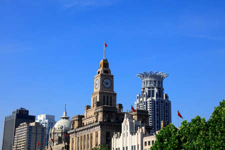 Famous buildings on the Bund in Shanghai in 19th century colonial style, China
