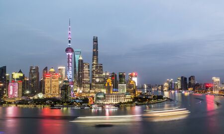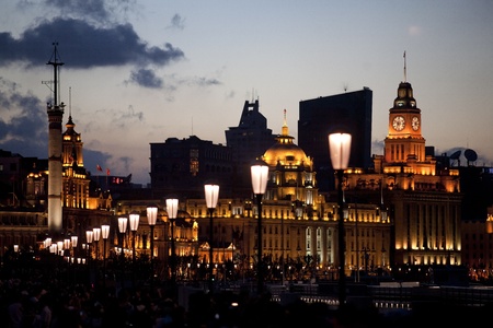 the bund at dusk, charming shanghai cityscape, China