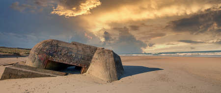 the ruins of german bunker in the beach of Normandy, France