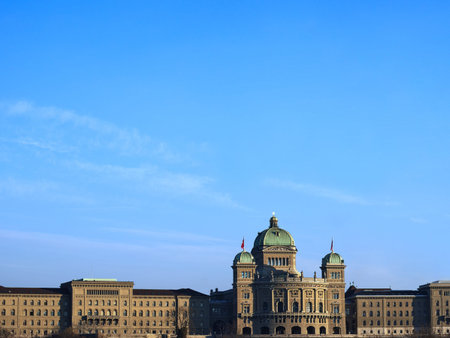 Switzerland, Bern. Federal Palace, Swiss government and parliament building, blue sky