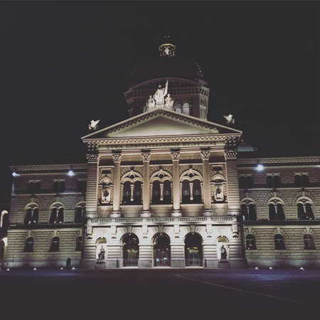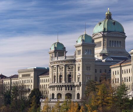 The Parliament Building in Bern, Switzerland. Seat of the Swiss Parliament. The Swiss federal government headquarters. The National Council and Council of States convene for regular sessions there.