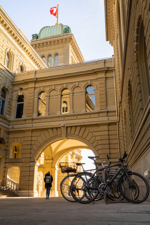 Bicycles at the Helvetian Confederation in Bern with a sunny day