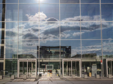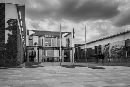 Berlin, Germany - May 28, 2017: Exterior of german government buildings in the government district in cloudy weather in Berlin. Black and white photography.