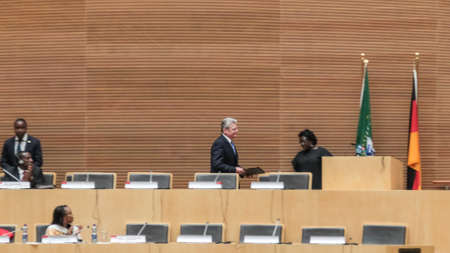 Addis Ababa, Ethiopia ? March 18: German President Joachim Gauck about to deliver his speech to the Council of Permanent Representatives of the AU at the African Union Commission Head Quarters in Addis Ababa, Ethiopia on March 18, 2013