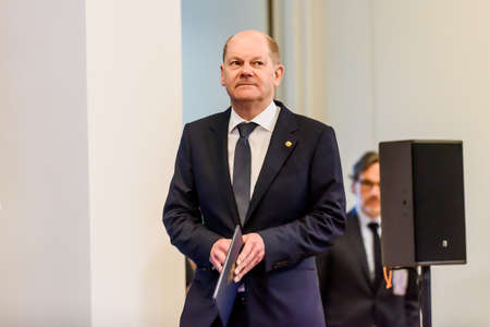 BRUSSELS, BELGIUM. 24th March 2022. Olaf Scholz, Chancellor of Germany, during press conference after NATO extraordinary SUMMIT 2022.