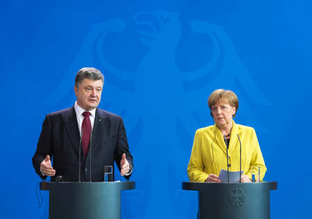 BERLIN, GERMANY - Mar. 16, 2015: Chancellor of the Federal Republic of Germany Angela Merkel during a joint briefing with President of Ukraine Petro Poroshenko in Berlin