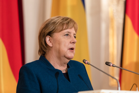 KIEV, UKRAINE - Nov 01, 2018: Federal Chancellor of the Federal Republic of Germany Angela Merkel during a meeting with President of Ukraine Petro Poroshenko