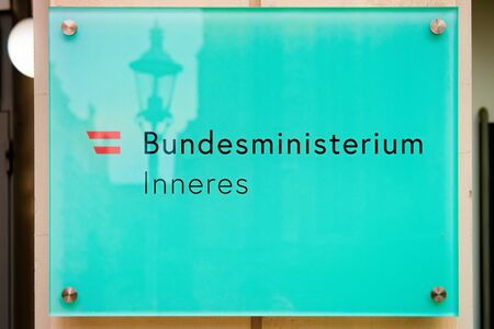 Street plate Bundesministerium fur Inneres, or Ministry of Interior, or BMI on Herrengasse in Innere Stadt in Vienna in Austria