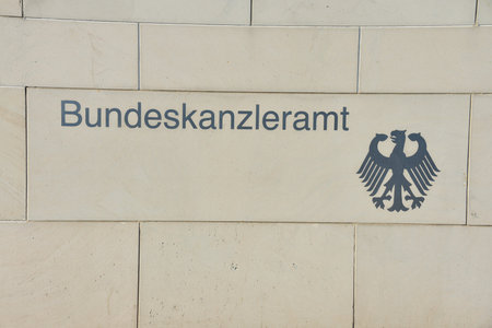 Berlin / Germany - September 22, 2019: The Main Entrance of Federal Chancellery building - Bundeskanzleramt - in Berlin, Germany