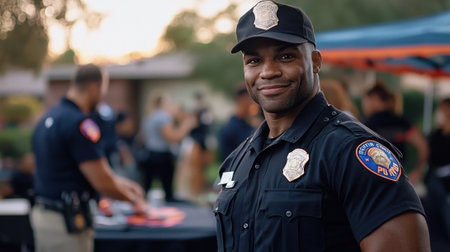 Police officers of various backgrounds in different settings embracing cultural diversity. Concept Cultural Diversity, Police Officers, Multicultural Settings, Embracing Differences, Law Enforcement