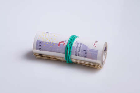 Pile of pound GBP money on white background financial concept