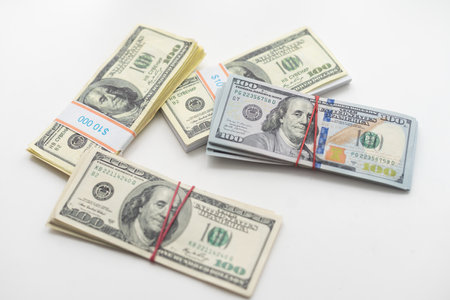 US american dollar money bills spread on white background