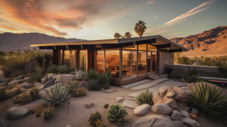 Modern house at sunset house Bauhaus Share Prompt