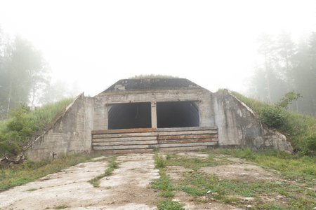 Old abandoned Cold War bunker in forest, Podborsko in Poland.
