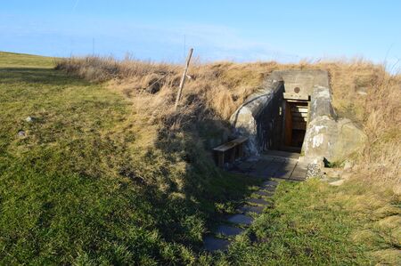 Entrance to historical bunker at Hel Peninsula near Baltic sea.