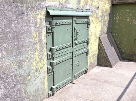 Big massive hermetic metal armored door of WW2 military bunker, the Netherlands