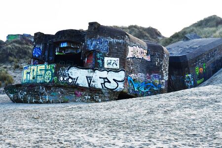 bunker ruin at beach near Houvig, Jutland, Denmark