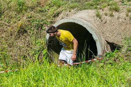 City Cesis, Latvian Republic. Run race, people were engaged in sports activities. Overcoming various obstacles and running. July 21. 2019.