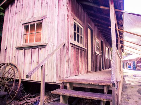 Old worn prefabricated wooden house detail, architecture and construction industry concept
