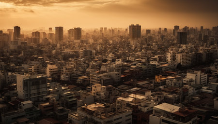 Aerial view of Tokyo Downtown skyline, urban city in Japan. Apartments and residential district in smart city in Asia. High rise skyscrapers buildings at sunset. Architecture landscape background.
