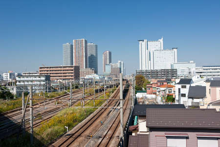 Skyline in Setagaya ward in sunny day with blue sky, Tokyo, Japan