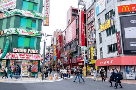 Tokyo, Japan - 19 3 2019: Busy crossroads in Shinjuku, Tokyo .