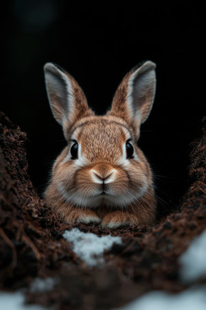 Vivid image of a wild rabbits face with detailed fur texture and whiskers