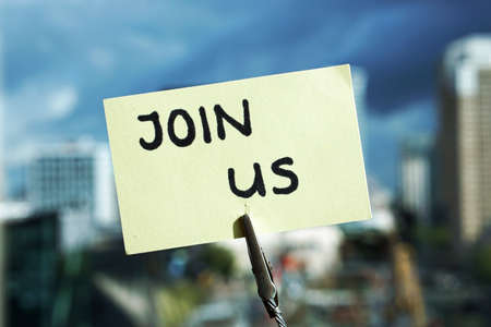 A close up view of a homemade placard, reading save our future, as environmental campaigners stage a peaceful protest in a city center.
